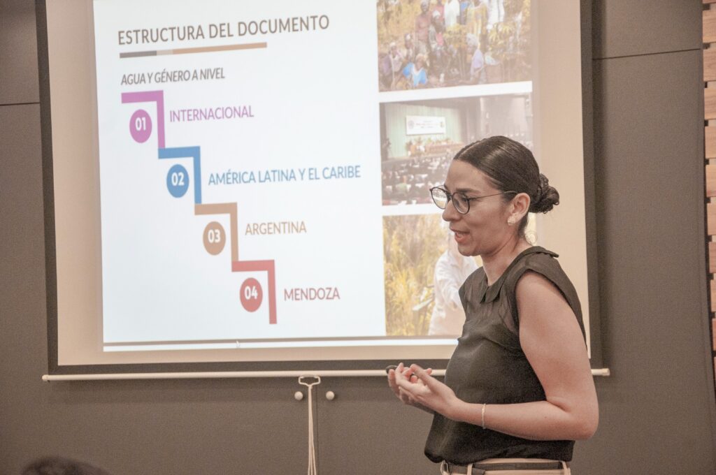 Durante la jornada, integrantes del Programa Agua y Mujer presentaron la publicación “Mujeres y agua en Mendoza. Un camino hacia la igualdad” y compartieron su trabajo y experiencias en la temática. Asimismo, se aprovechó el espacio para difundir la labor de investigación que lleva adelante Irrigación en relación con el género y los recursos hídricos.