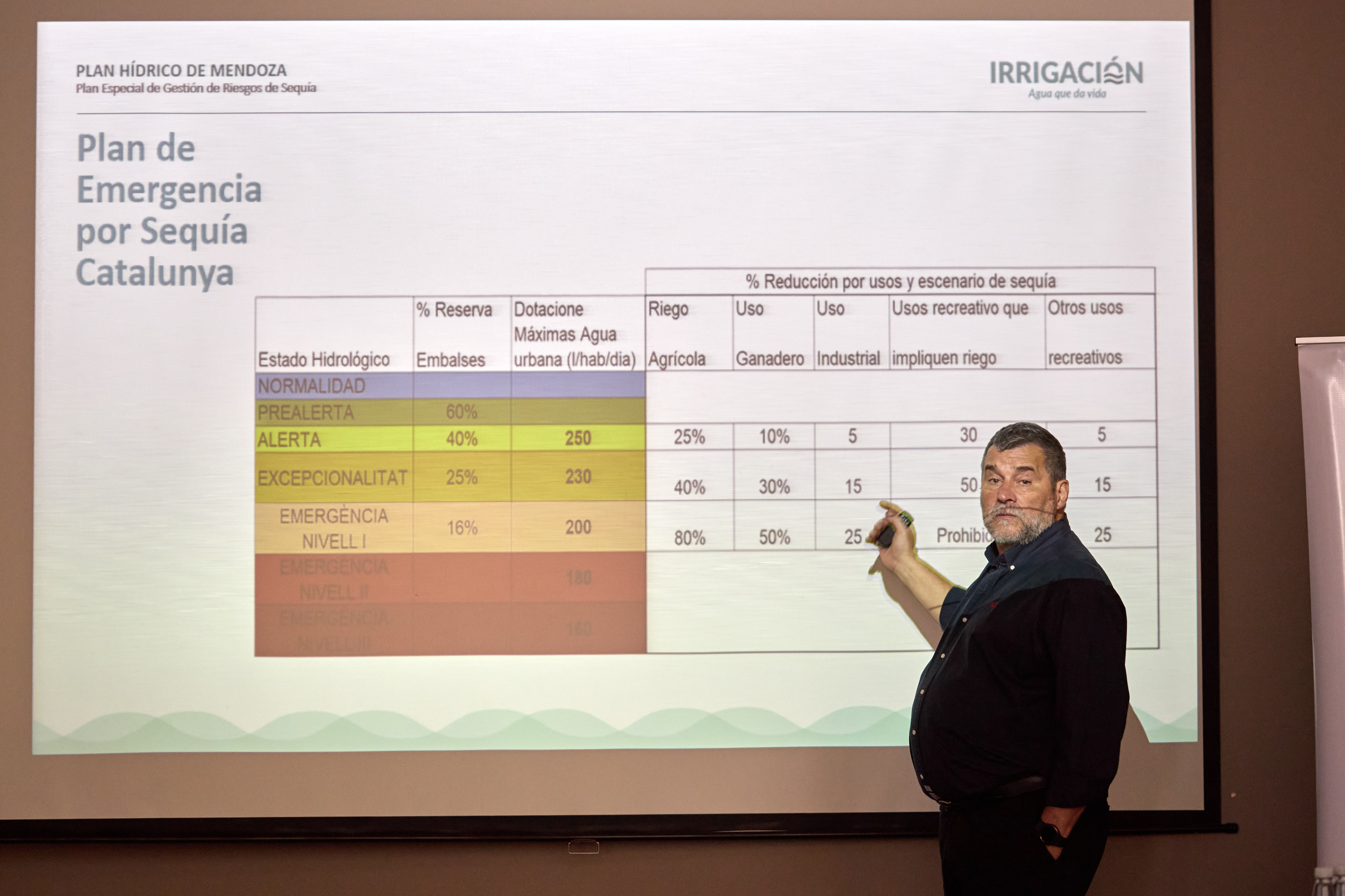 El Plan de Sequía es el marco que fija lineamientos obligatorios y recomendaciones técnicas para anticipar, mitigar y responder a las sequías y se efectiviza a través de Planes de Acción por Cuenca (PAGRIS) para los ríos Mendoza, Tunuyán, Diamante, Atuel y Malargüe. Y define una gobernanza clara: el DGI es la autoridad de aplicación, que a través de las Subdelegaciones implementan los planes en sus jurisdicciones en conjunto con comisión ah-hoc.