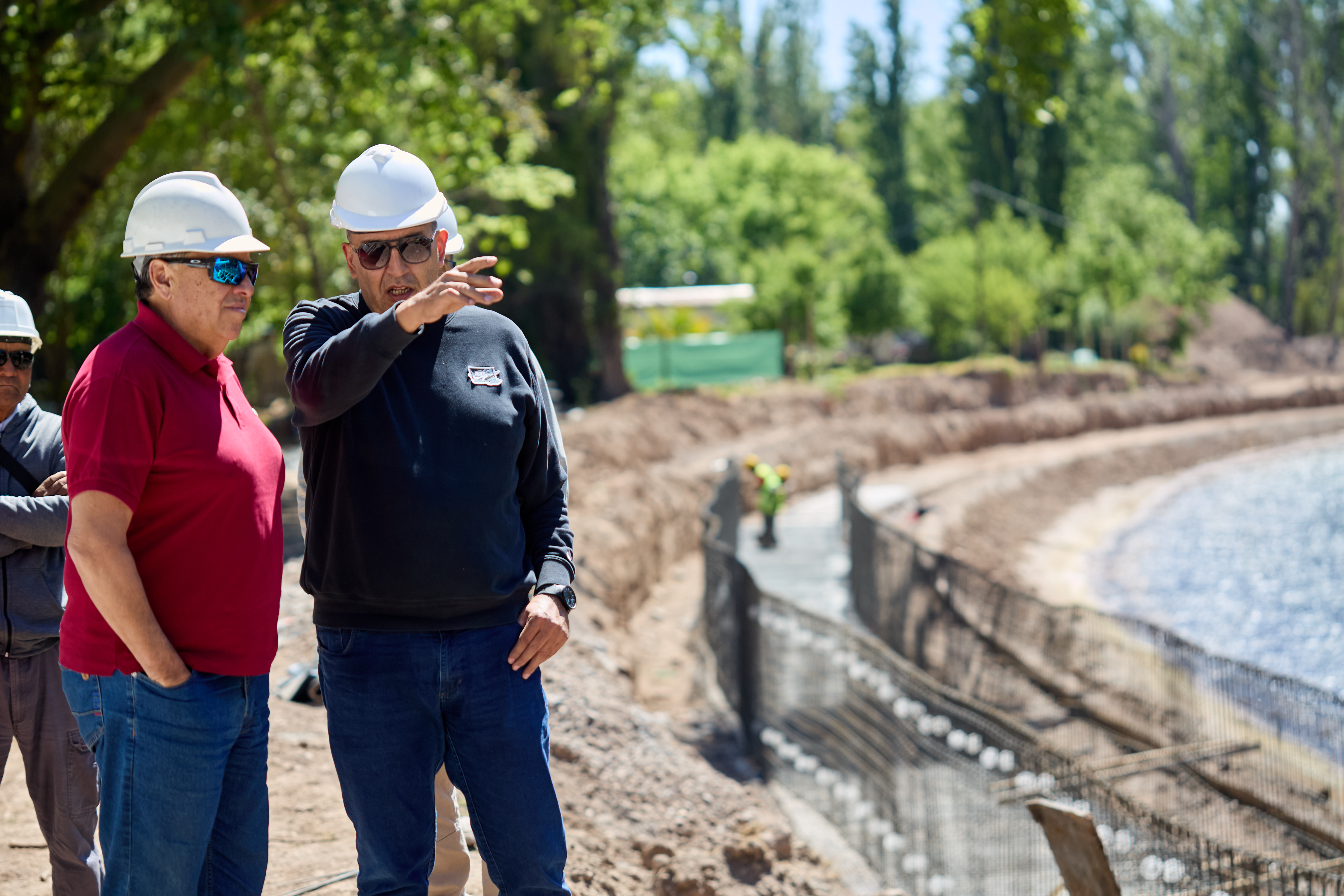 Con el objetivo de dotar a las plantas potabilizadoras con el caudal necesario en época de corta de agua y el arreglo de compuertas en caso de ser necesario, continuando sin interrupción con la entrega del caudal mínimo para riego en época invernal, Irrigación ejecuta la obra By Pass Dique Cipolletti, en Luján de Cuyo. El Superintendente Sergio Marinelli y el Subdelegado de Aguas, Marcelo Landini, visitaron el dique para constatar su avance.