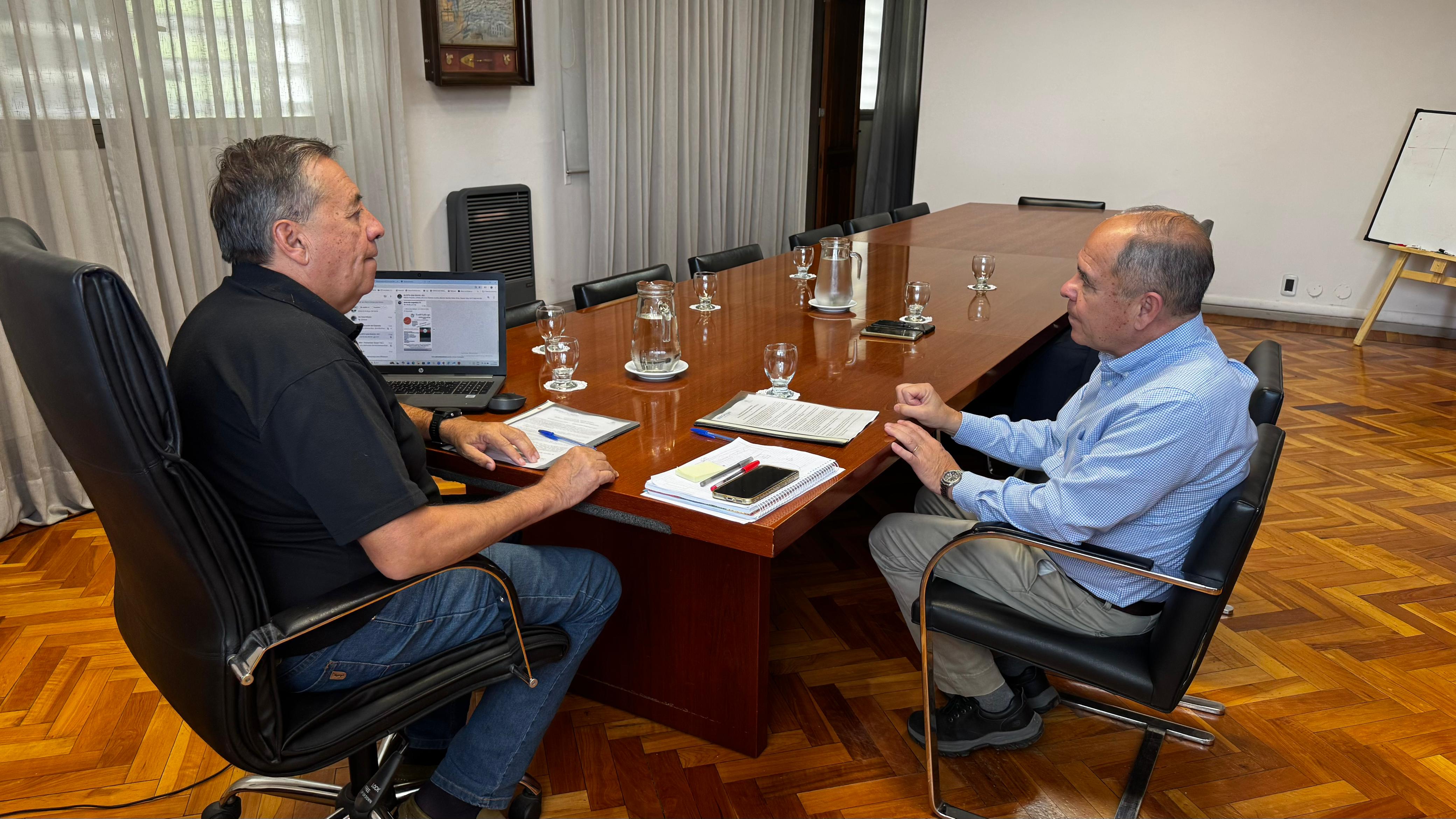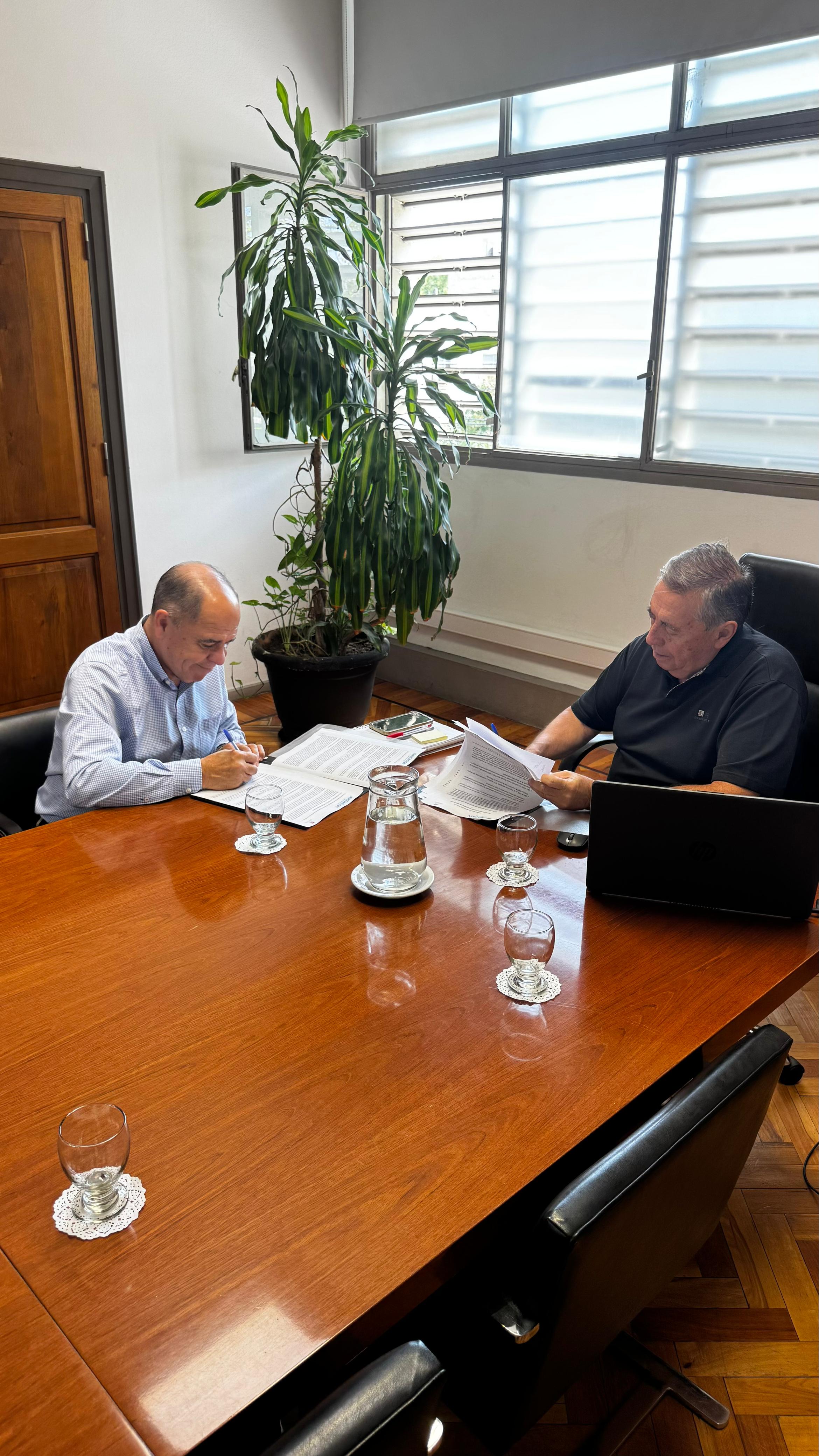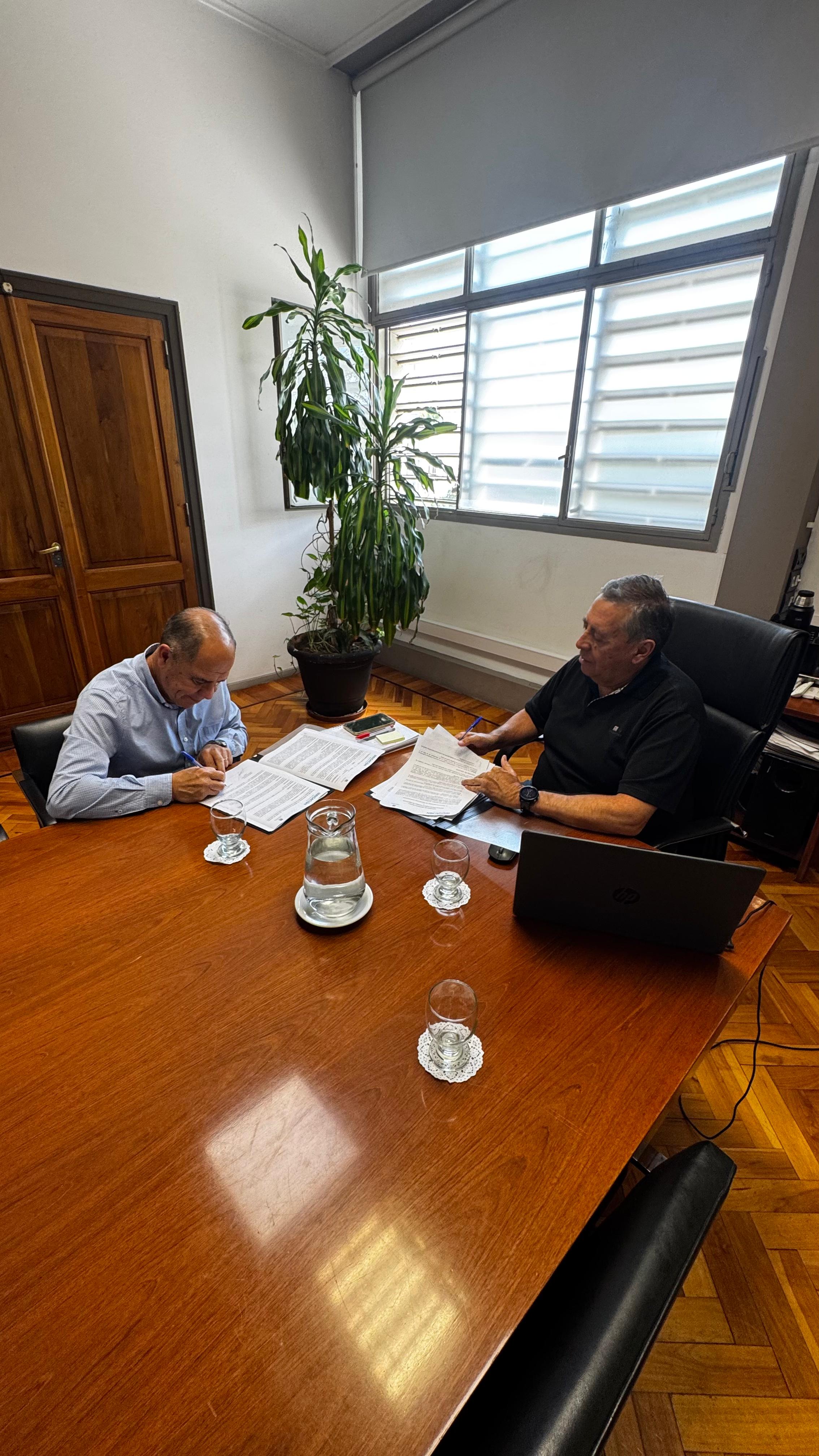 La concreción de la firma se llevó a cabo en Sede Central de Irrigación. Allí el Superintendente de Irrigación, Sergio Marinelli y Carlos Galmarini, Director del INTA centro regional Mendoza- San Juan compartieron una cordial reunión para sellar una fructífera relación de larga data.